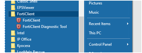 Start > All Programs > FortiClient > FortiClient