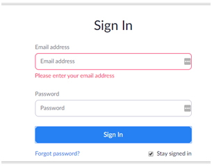 Enter your TFK/GHAI email address and your ZOOM account password you created. If you don’t know it, contact HELPDESK and we’ll reset it for you.