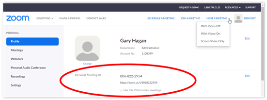 Your Personal Meeting ID will never change. You will use that for all Zoom conference calls that you start. You should copy and send the Personal Meeting link out beforehand to anyone you want to join the call. Copy and paste it into an email, a text message, a Facebook Messenger message, etc.