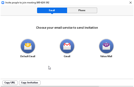 ‘If you click on Invite or Invite Others you will then have the choice to send them an email (with all the call information automatically added), or have Zoom call them on their telephone (you would just need to enter their phone number.)